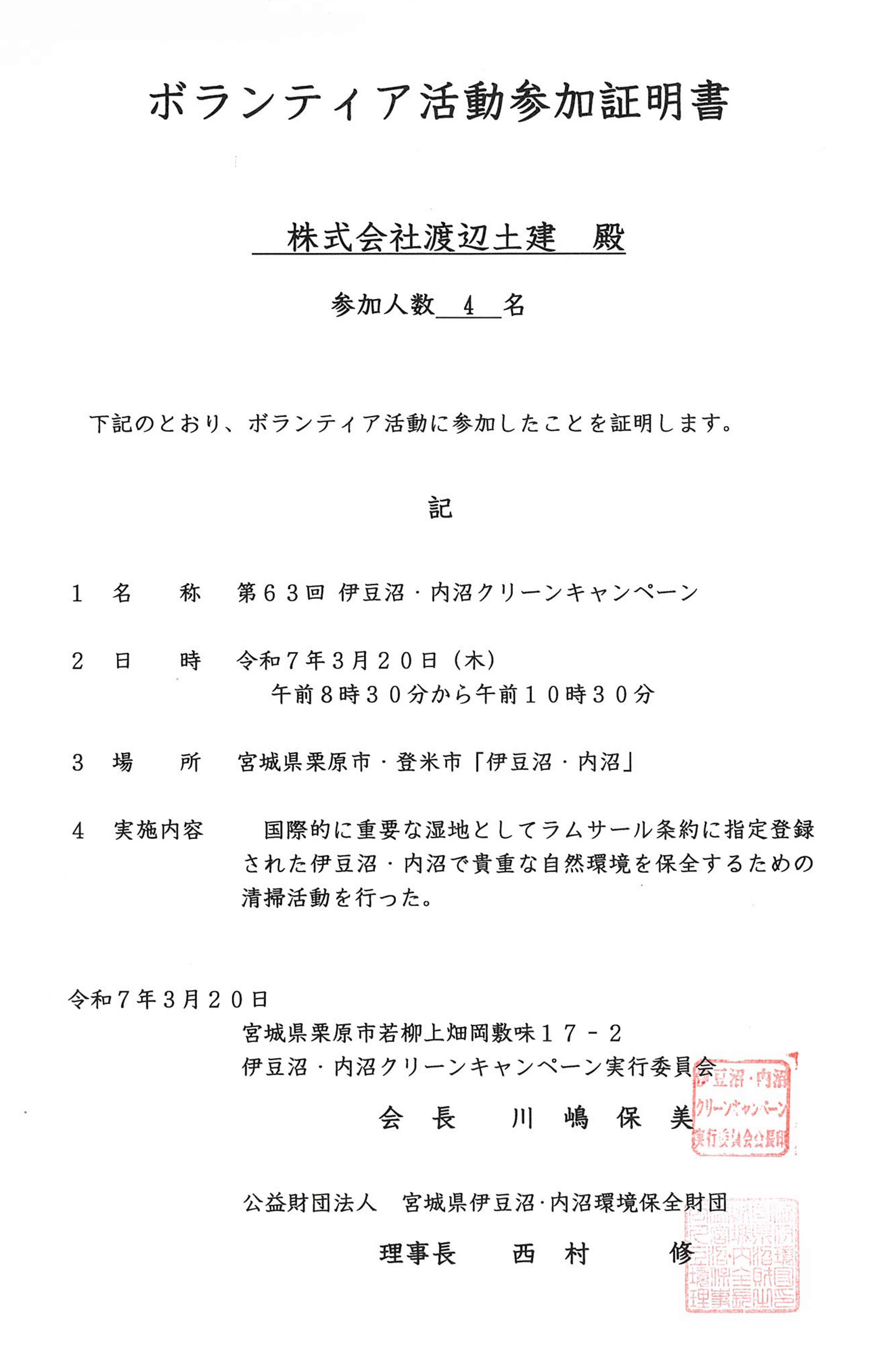 当社は登米市サンクチュアリーセンターから清掃活動へ参加しました。
