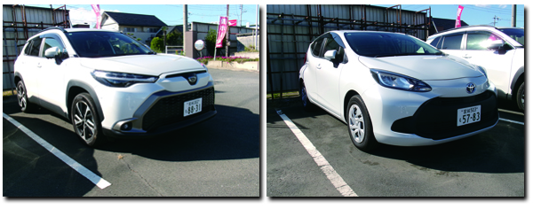 ハイブリッド車(カローラクロス、アクア)を社用車として購入。